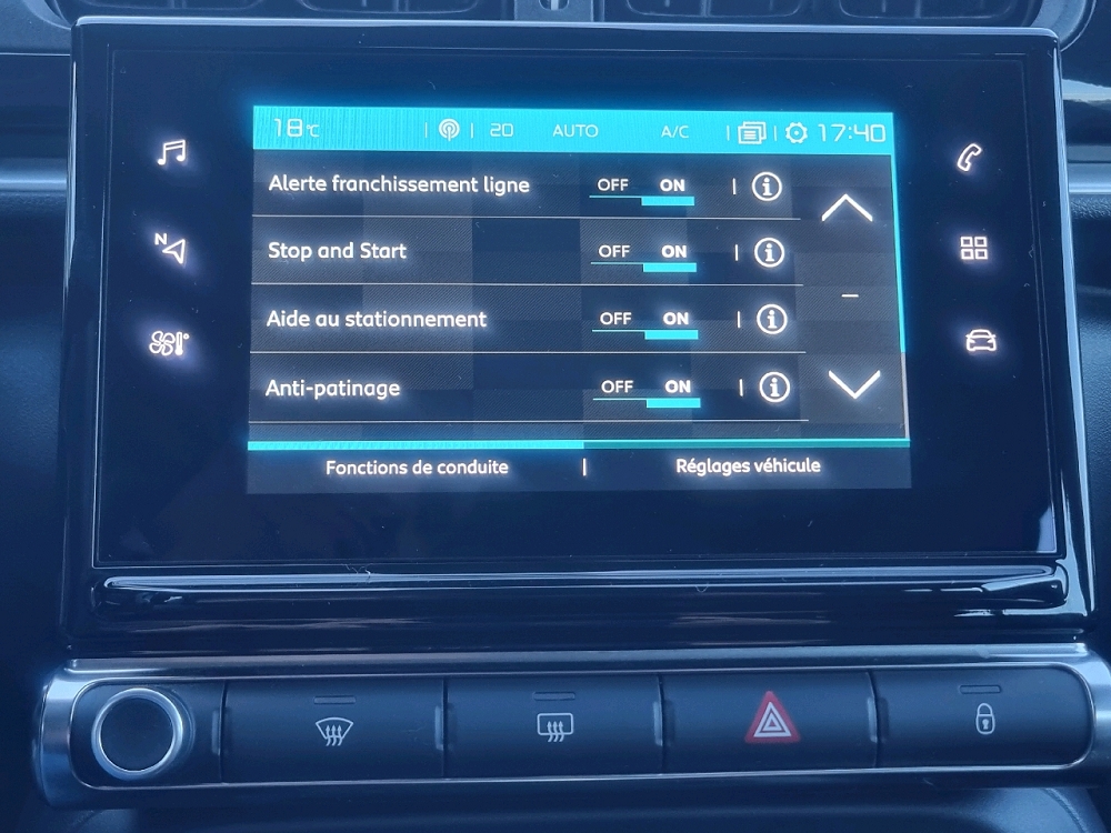 Commandes du système audio au volant, Clim automatique, Capteur de pluie, Arrêt et redémarrage auto. du moteur, Allumage des phares automatique, ABS, 6 Haut parleurs, Roue de secours, Pack City & Nav, Gris Acier (M), Limiteur de vitesse, Kit mains-libres Bluetooth, Interface Media, Fonction MP3, Feux de jour à LED, ESP, Ecran tactile, Ecran multifonction couleur, Rétroviseurs électriques, Régulateur de vitesse, Radio numérique DAB, Prise USB, Phares antibrouillard, Ordinateur de bord, Vitres avant électriques, Verrouillage centralisé des portes, Verrouillage centralisé à distance