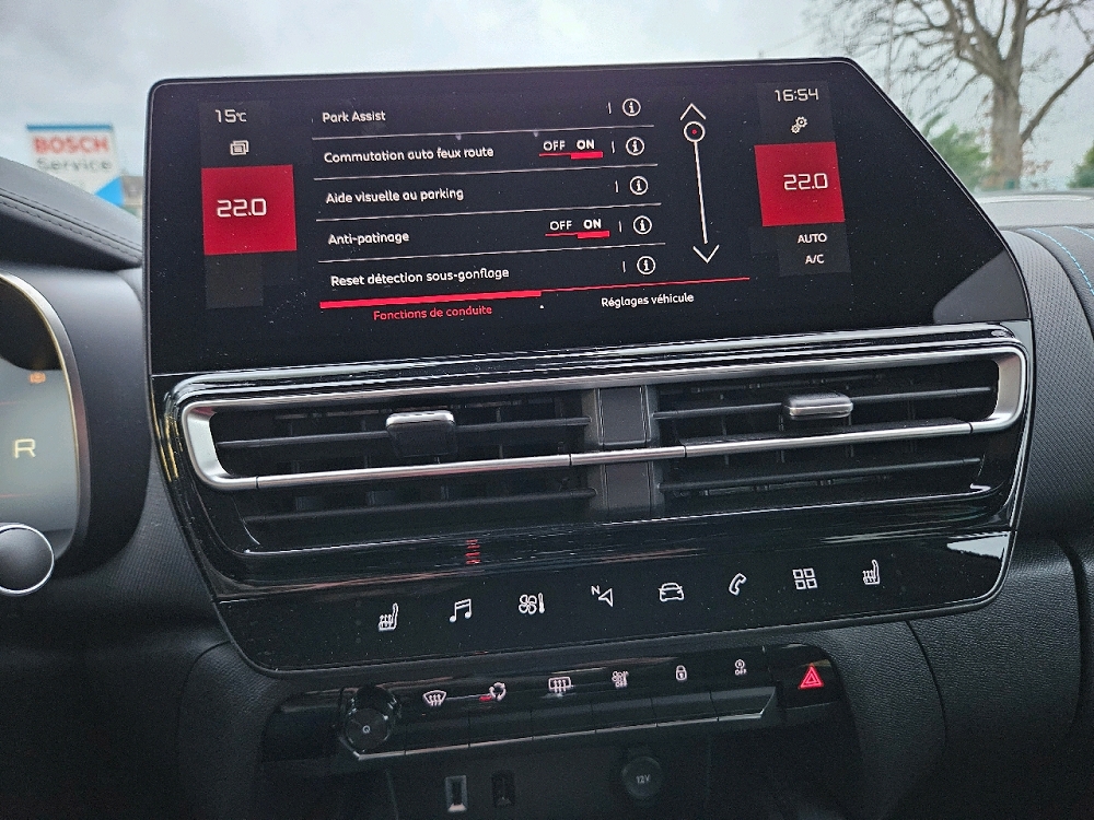 Citroen Park Assist avec vision 360, Gris Acier, Hayon mains libres, Toit bi-ton Noir Perla Nera (N), Siège conducteur électrique et sièges avant chauffants, 2éme rangée de sièges coulissants, 3 sièges individuels en rang 2, Accoudoir central AV avec rangement, AFIL, Aide au démarrage en côte, Aide au freinage d'urgence, Allumage des phares automatique, Caméra de recul, Capteur de pluie, Clim automatique bi-zones, Démarrage sans clé, Ecran multifonction couleur, Ecran tactile, ESP, Feux arrière à LED, Feux de jour à LED, Fonction MP3, Frein stationnement électrique automatiq, GPS Cartographique, Guidage pour manoeuvre de stationnement, Jantes Alu, Kit mains-libres Bluetooth, Limiteur de vitesse, Lunette arrière surteintée, Phares antibrouillard, Phares avant LED, Prise USB, Radar de distance, Radar de stationnement AR, Radar de stationnement AV, Radio numérique DAB, Régulateur de vitesse adaptatif, Rétroviseur intérieur électrochrome, Rétroviseurs rabattables électriquement, Services connectés, Système avancé de détection d'obstacles, Système d'accès sans clé, Système de contrôle des angles morts, Système d'éclairage intelligent, Verrouillage centralisé à distance, Vitres arrière surteintées, Volant cuir, Volant multifonction, Volant réglable en profondeur et hauteur