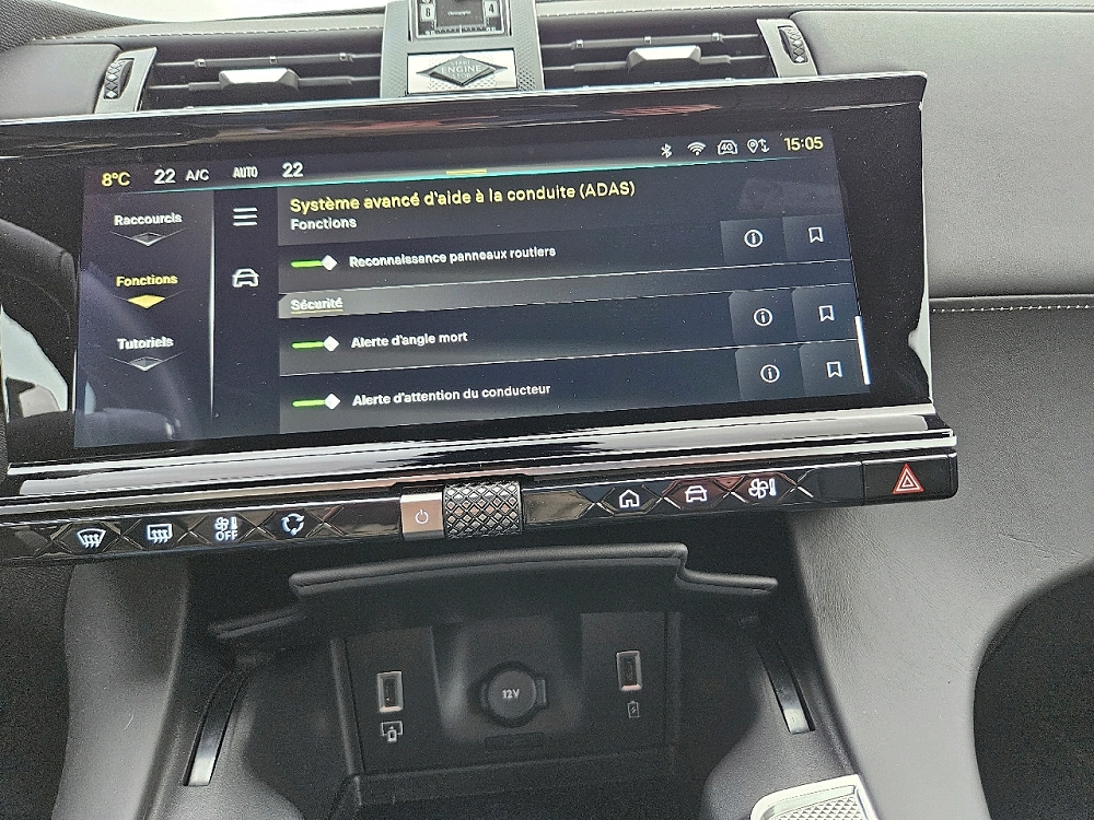 Guidage pour manoeuvre de stationnement, Interface Media, JA 19", Limiteur de vitesse, Lunette arrière surteintée, Ordinateur de bord, Ouverture du coffre mains-libres, Palettes changement vitesses au volant, Pare-brise chauffant, Phares antibrouillard LED, Phares de route adaptatifs, Prise USB, Radar de distance, Radar de stationnement AR, Radar de stationnement AV, Radio numérique DAB, Reconnaissance panneaux de signalisation, Régulateur de vitesse adaptatif, Régulateur de vitesse et de distance, Rétroviseur intérieur électrochrome, Rétroviseurs rabattables électriquement, Services connectés, Siège conducteur chauffant, Siège conducteur électrique, Siège conducteur réglable en hauteur, Siège passager à réglages électriques, Siège passager chauffant, Siège passager réglable en hauteur, Sièges AV avec réglage lombaire électr, Sièges avant à ventilation active, Sièges avant massants, Système d'accès sans clé, Système de contrôle des angles morts, Système d'éclairage intelligent, Toit ouvrant électrique panoramique, Verrouillage auto. des portes en roulant, Verrouillage centralisé à distance, Volant cuir, Volant réglable en profondeur et hauteur, Gris Titane (M), ABS, Accoudoir central AV avec rangement, AFIL, Aide au démarrage en côte, Aide au freinage d'urgence, Allumage des phares automatique, Appel d'Assistance Localisé, Appel d'Urgence Localisé, Assistance de maintien de trajectoire, Banquette 1/3-2/3, Caméra de recul, Ceinture de vitrage chromée, Clim automatique bi-zones, Coffre assisté électriquement, Commandes vocales, Démarrage sans clé, Dispositif freinage automatique, Eclairage statique d'intersection, Ecran couleur, Ecran multifonction couleur, Ecran tactile, ESP, Feux arrière à LED, Feux de freinage d'urgence, Feux de jour à LED, Feux de route automatiques, Frein stationnement électrique automatiq, Freinage automatique d'urgence, GPS Cartographique